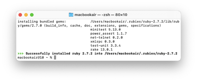 If you see Ruby version 2.6.10, it is the system Ruby and you likely forgot to close and re-open the terminal window.