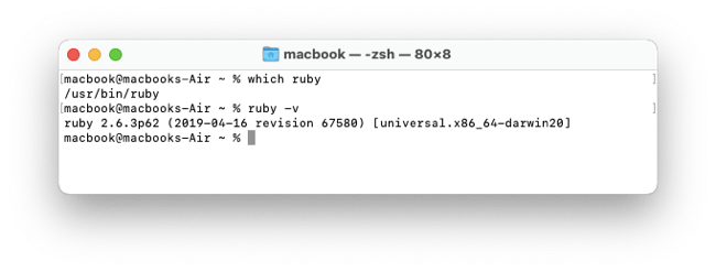 MacOS comes with a "system Ruby" pre-installed. MacOS Sonoma includes Ruby 2.6.10 which is not the newest version. It's a bad idea to use the Mac system Ruby. See the article Do not use the MacOS system Ruby. You can see the system Ruby with which ruby and ruby -v.