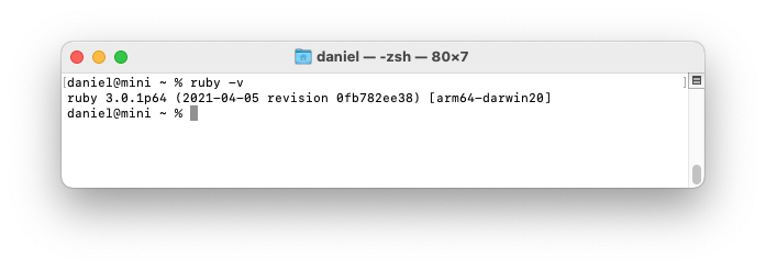 Verify that the newest version of Ruby is installed with ruby -v.