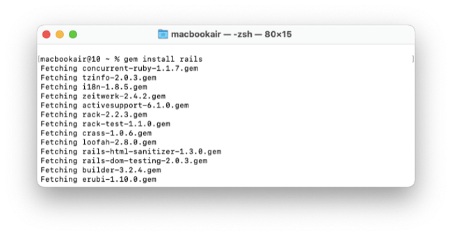 Rails is now installed. If you want, you can close the Terminal window. Everything is installed, so you won't lose anything by closing the Terminal.